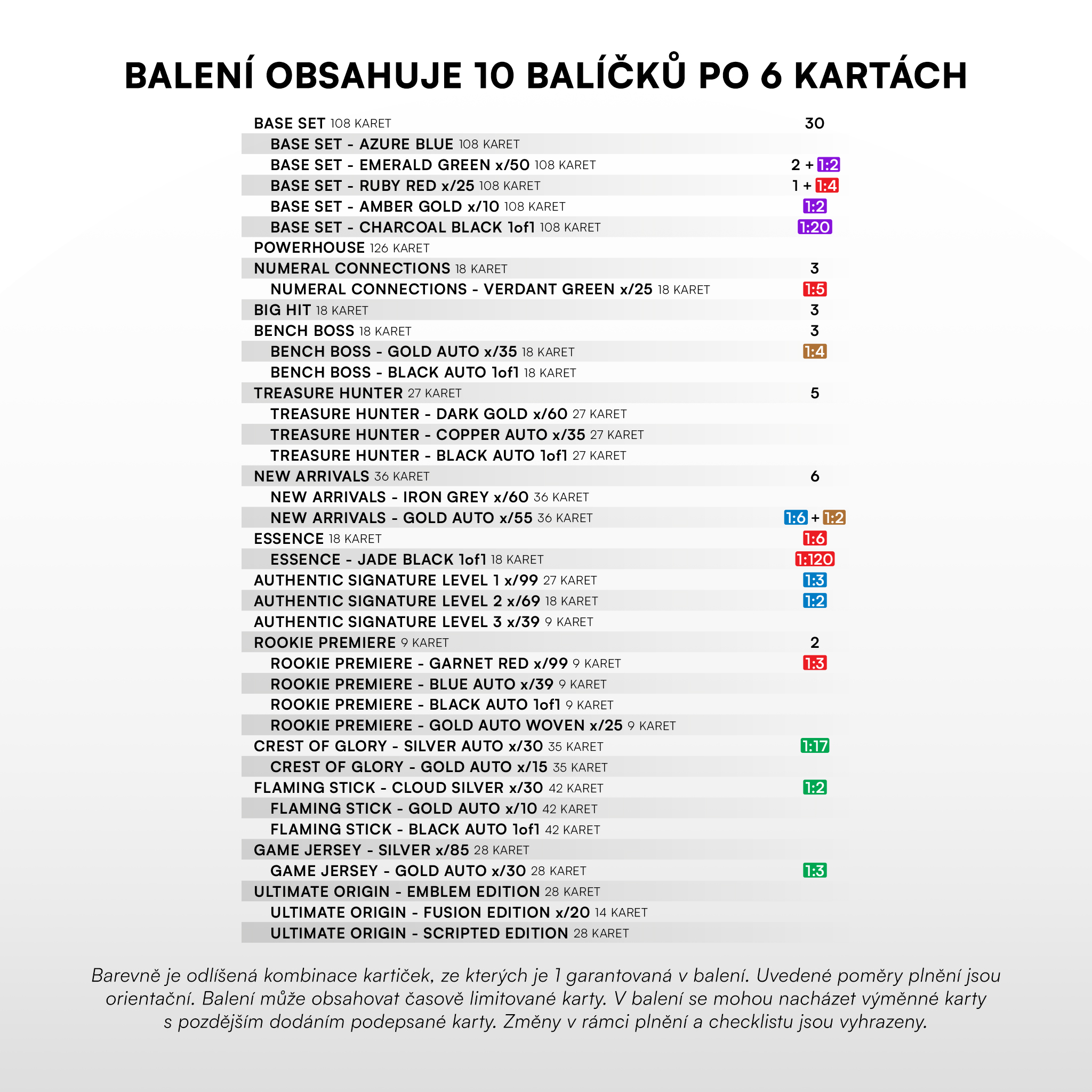• limitovanou insertní kartu Numeral Connections - Verdant Green x/25, Essence - Jade Black 1of1 nebo Rookie Premiere - Garnet Red x/99